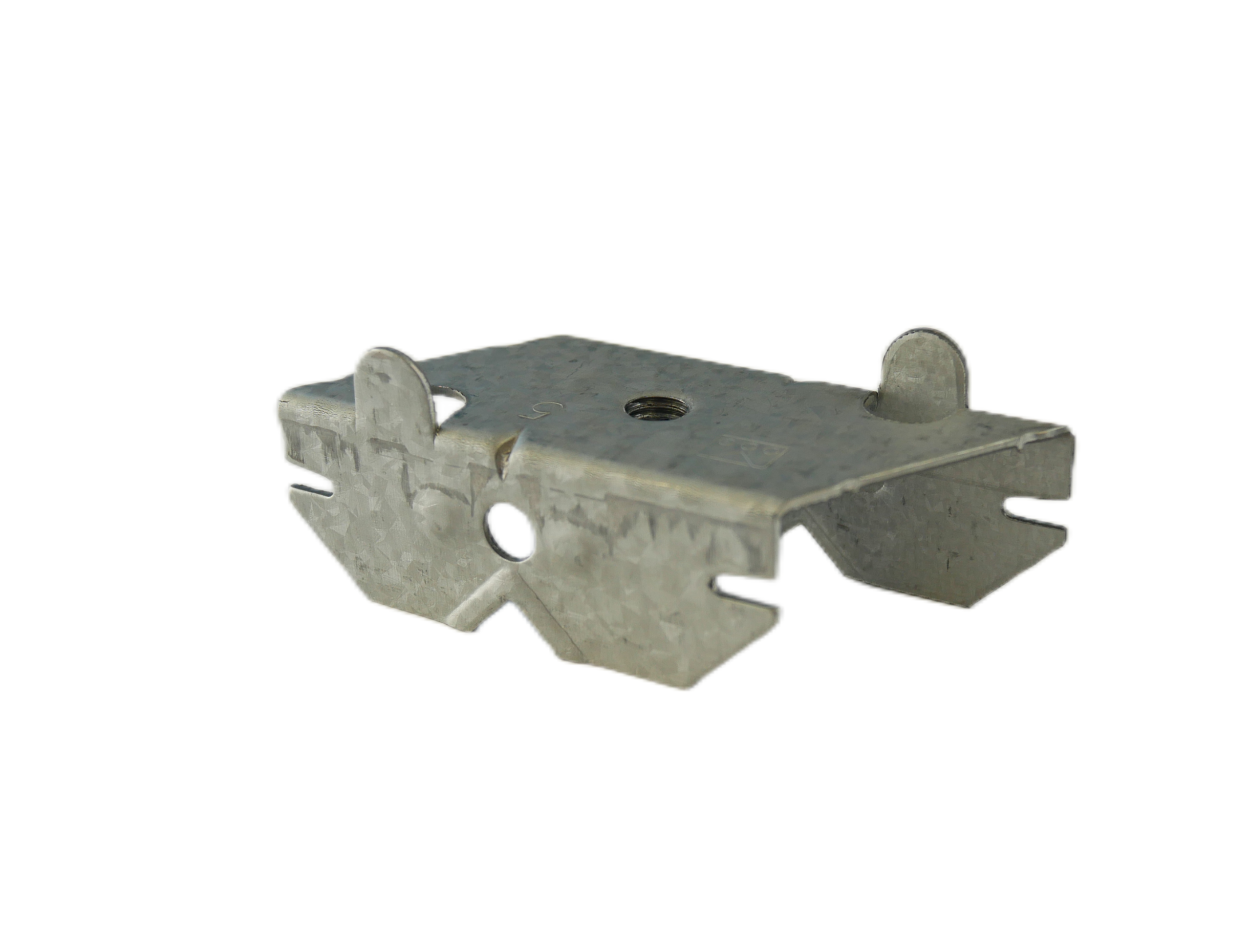 Cavalier de suspension en acier galvanisé d’épaisseur 1mm avec trou fileté de diamètre 6 mm pour fourrures 17-47 et 17-55.